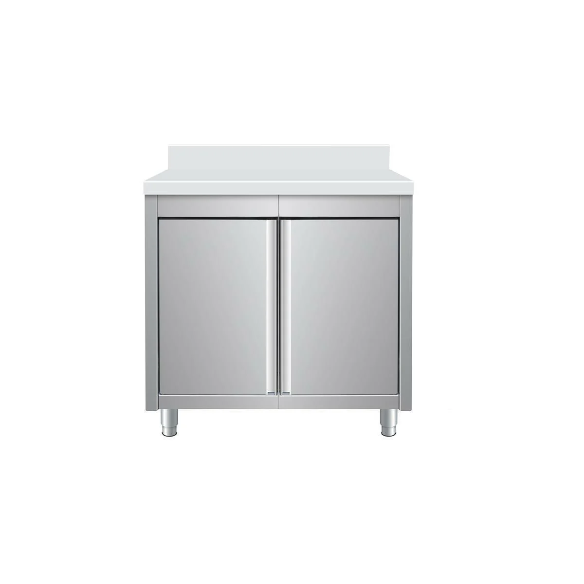 Arbeitsschrank mit Flügeltüren und Zwischenboden, mit Aufkantung, Edelstahl – 800 x 600 x 850