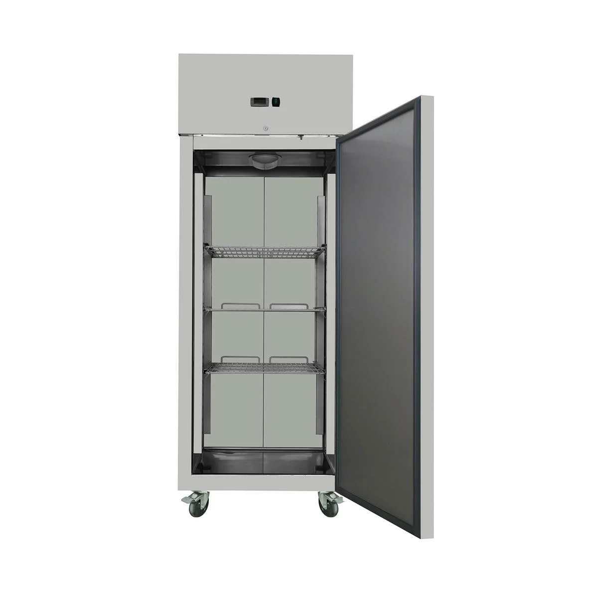 Der Skyrainbow Statisch Kühlschrank aus Edelstahl mit einer Tür ist perfekt geeignet für Großküchen und Restaurants, um Lebensmittel zu