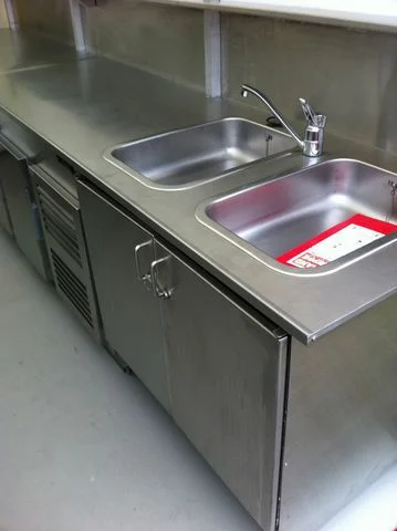 1 bord med 2 vaske (mål: L:373 x D:70 x H:90 cm.)