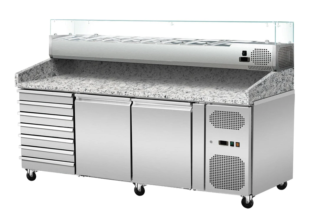 Skyrainbow Pizzakühltisch Granitplatte, 7 ungekühlte Schubladen 2 Türen, -2° bis +8° C, 2025 x 800 x 860