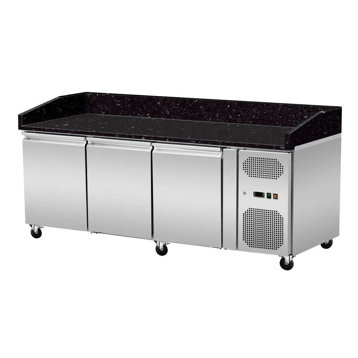 Skyrainbow Pizzahühltisch schwarz Granitplatte, 3 Türen, -2° bis +8° C, 2025 x 800 x 860