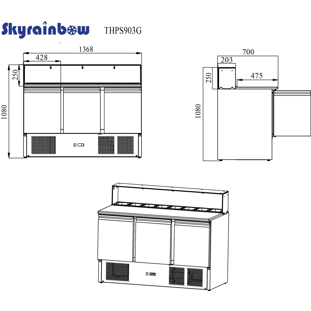 Skyrainbow Pizzasaladette 3-türig mit Granitarbeitsfläche, 8 x GN1/6, +2° / +8°C