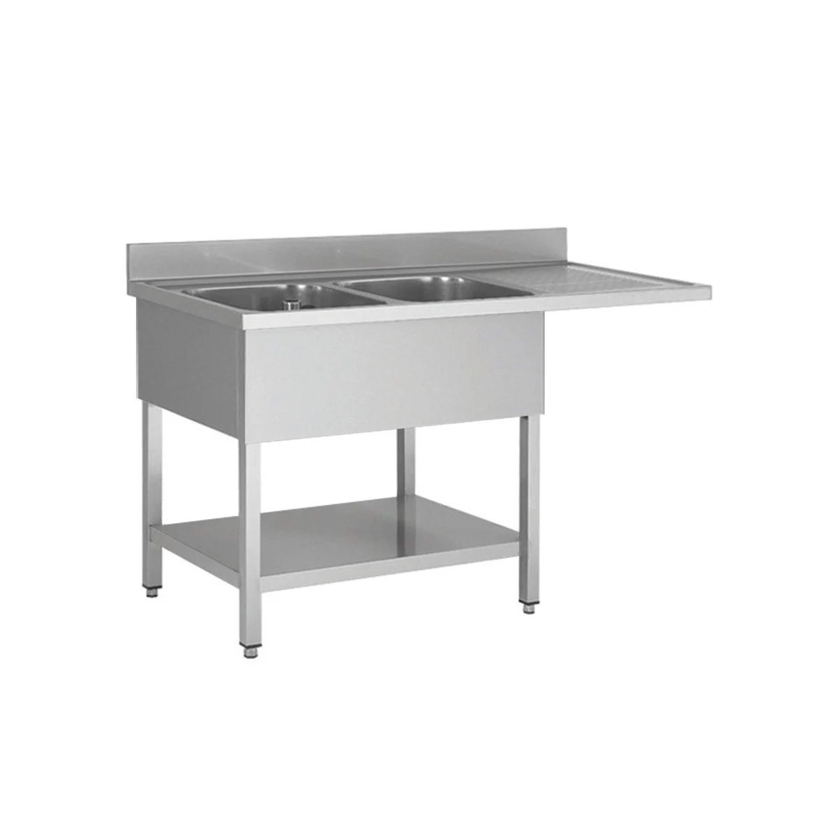 Spülcenter aus Edelstahl, zwei Becken links, 160 x 70