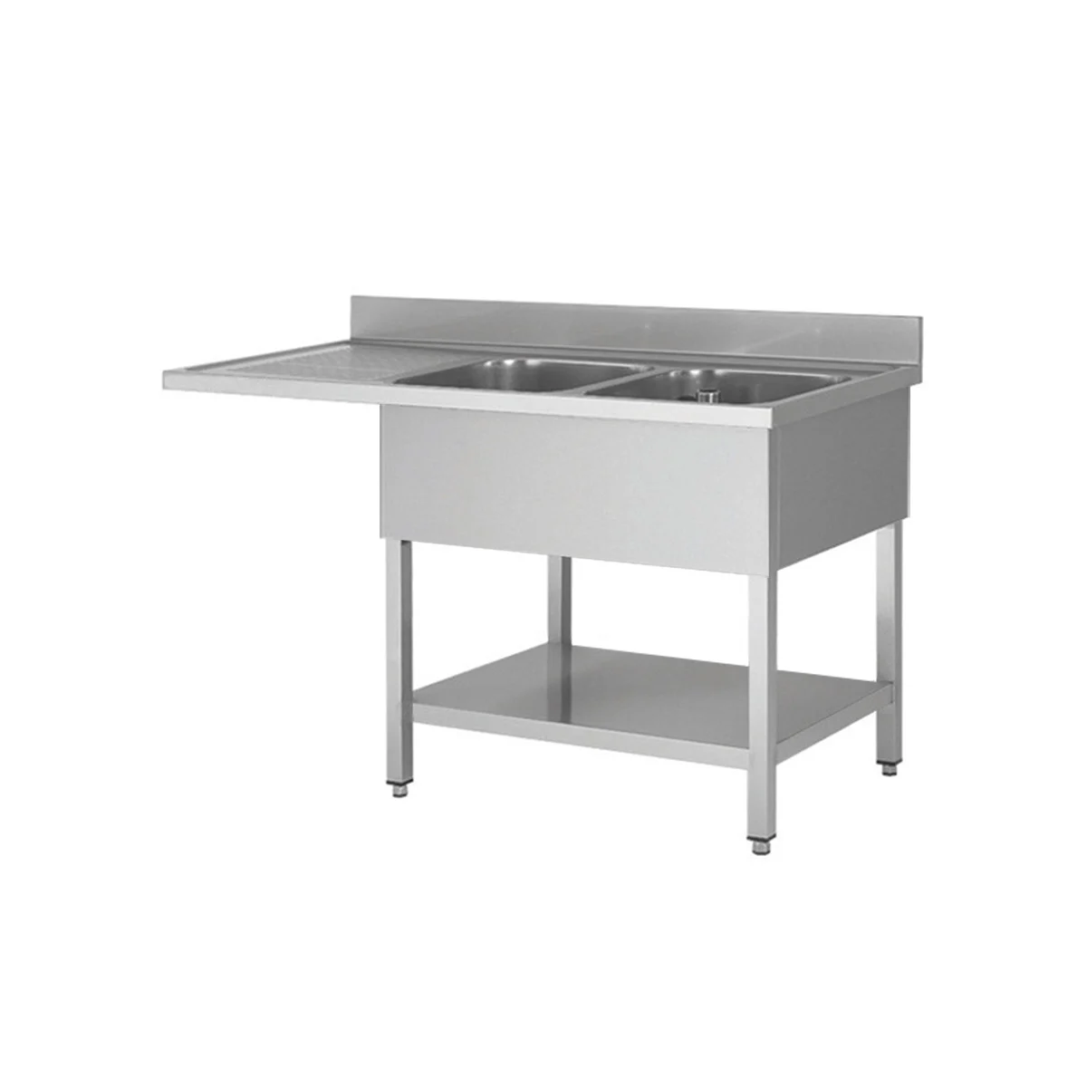 Spülcenter aus Edelstahl, zwei Becken rechts, 180 x 70